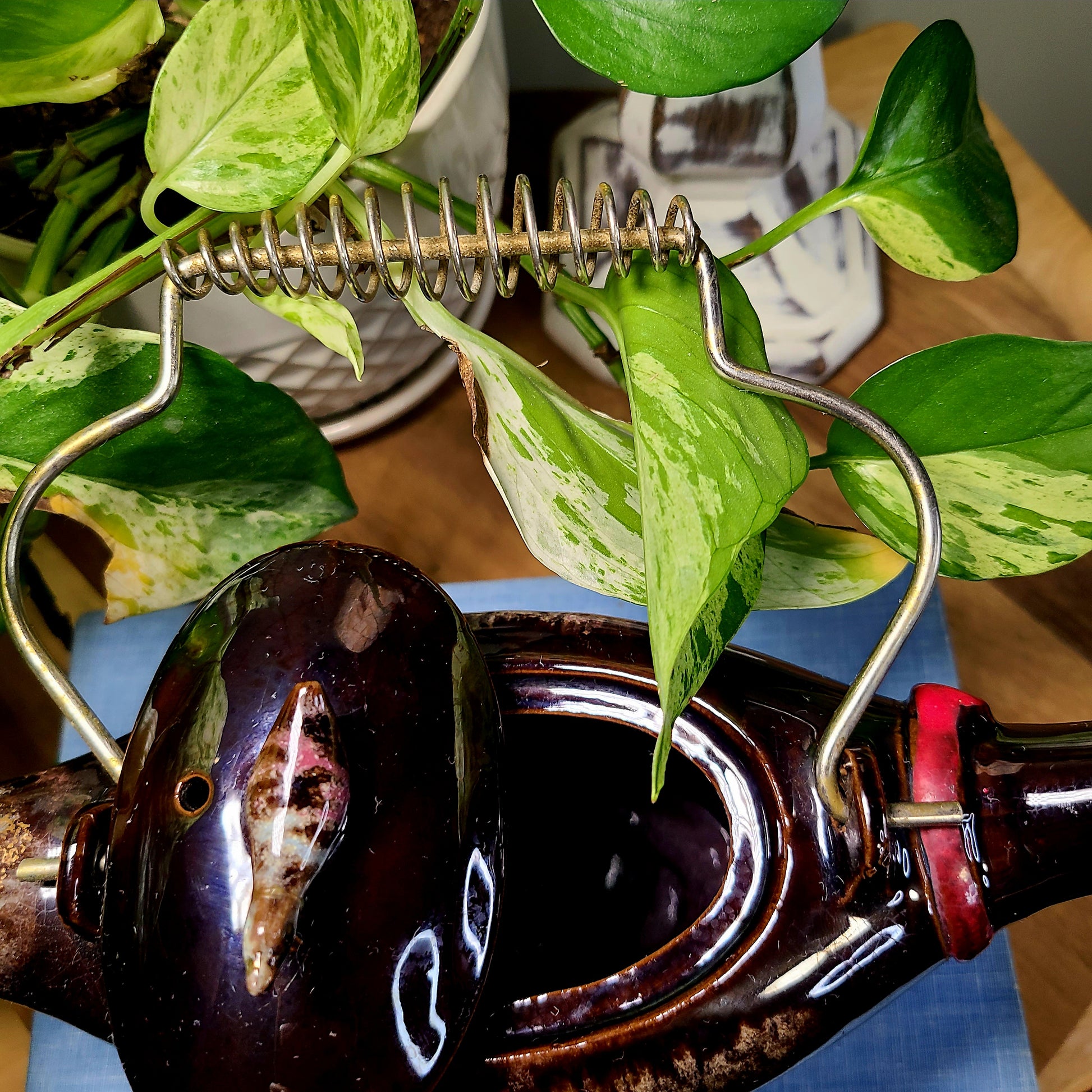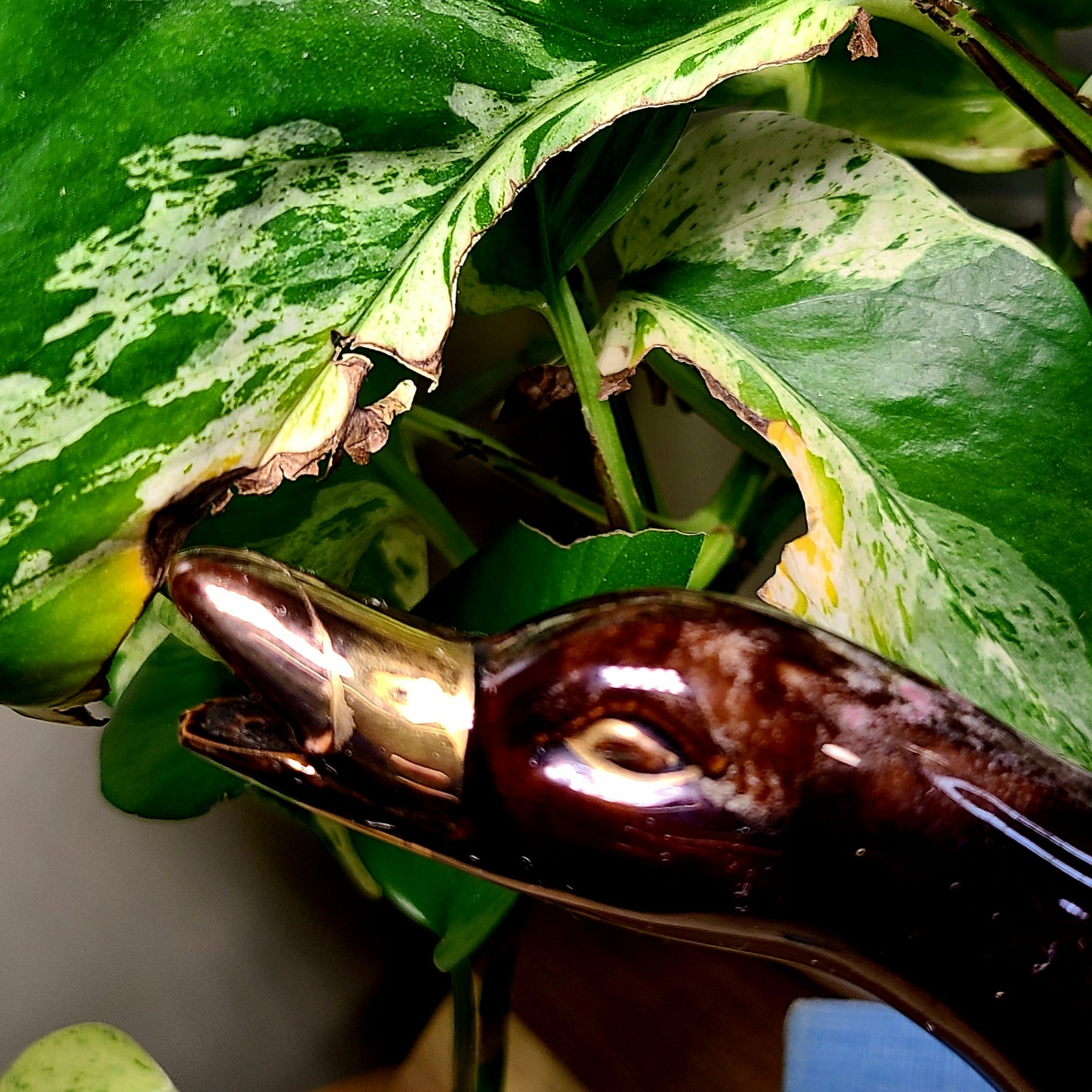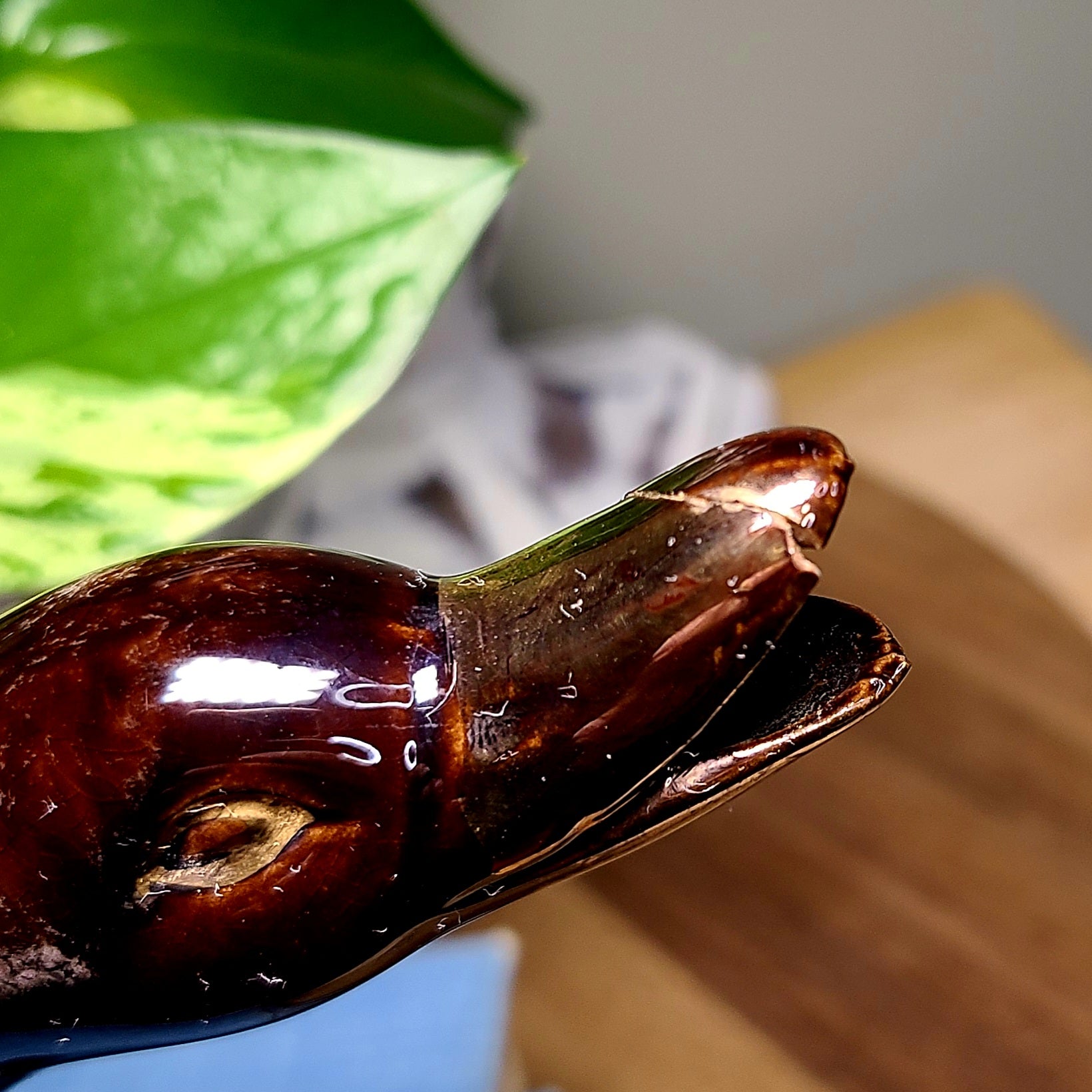 Vintage Redware Brown & Gold Geese Duck Teapot